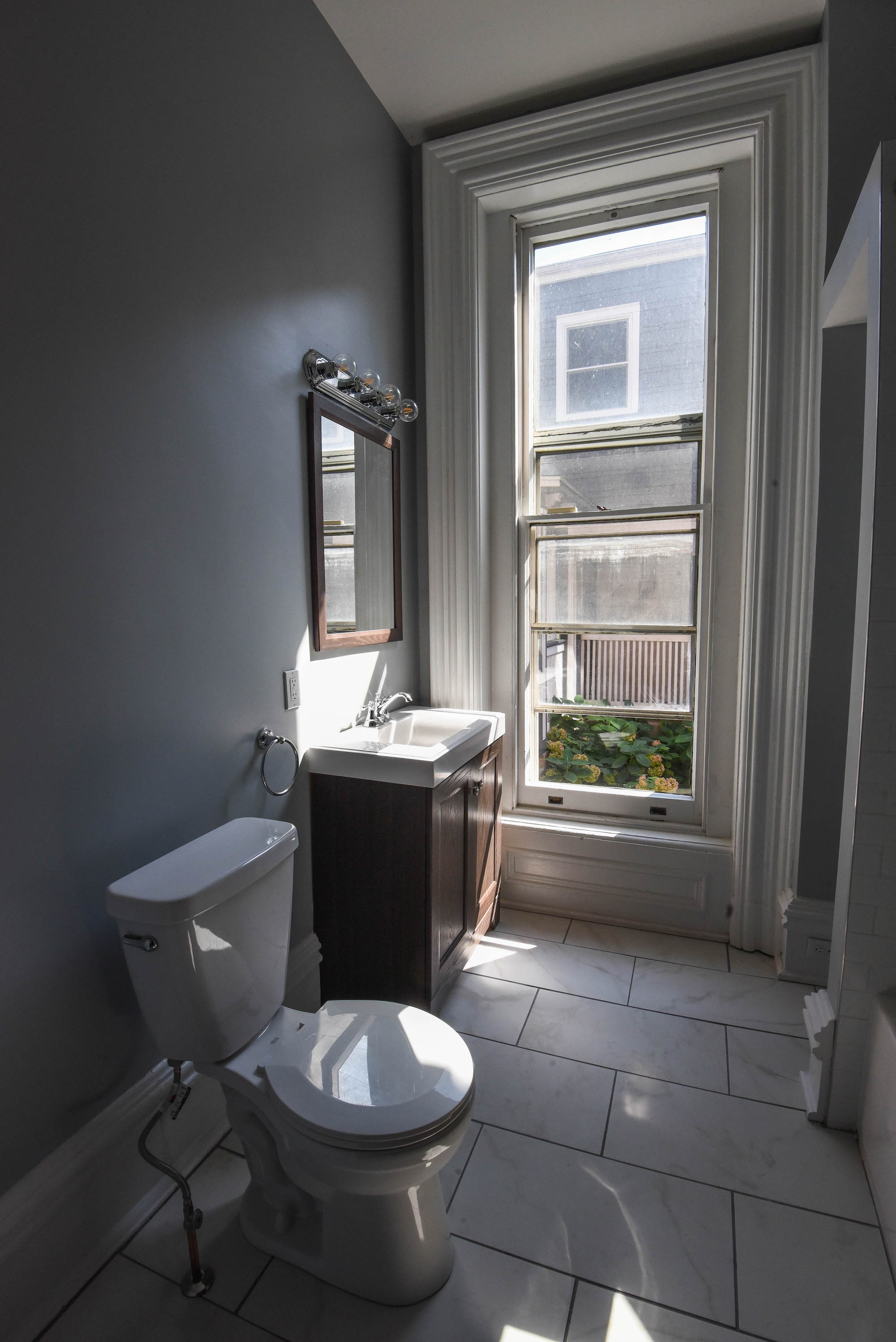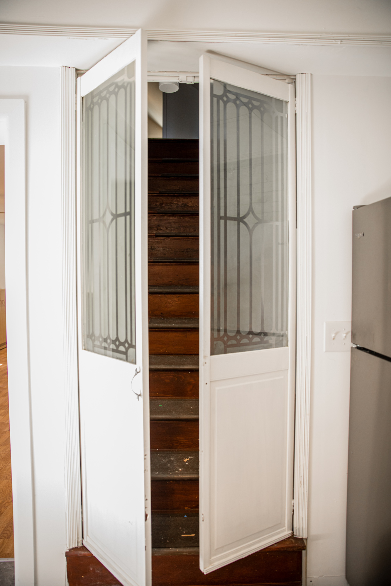 The renovation of this large double was an approved and completed Historic Tax Credit project. In the upper owner unit, the attic was converted into legal living space via a new sprinkler system, creating a five-bedroom, three-bathroom home. In the three-bed, two-bath lower unit, we converted a dilapidated rear porch into a primary suite with a bathroom and walk-in closet.