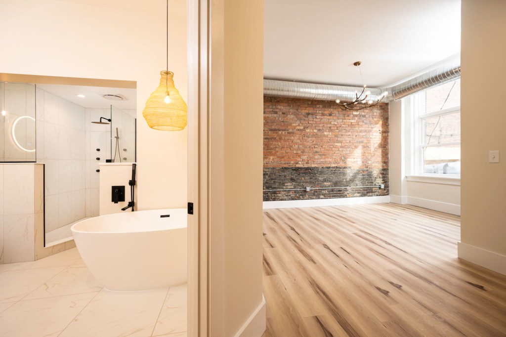Located on the 500 block of Main Street in the heart of Downtown Buffalo, this mixed use commercial-residential building was in need of a transformation. The long-vacant second floor commercial space was converted into a 1,600-square-foot, two-bedroom, two-bathroom luxury apartment specifically designed with a flexible layout to appeal to a wide variety of renters.
